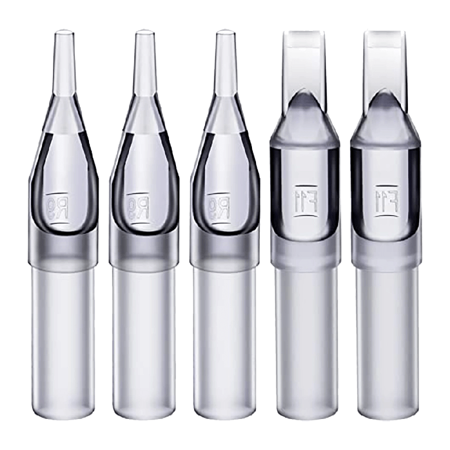 Puntas desechables para tatuajes, redondas/planas esterilizadas de plástico.